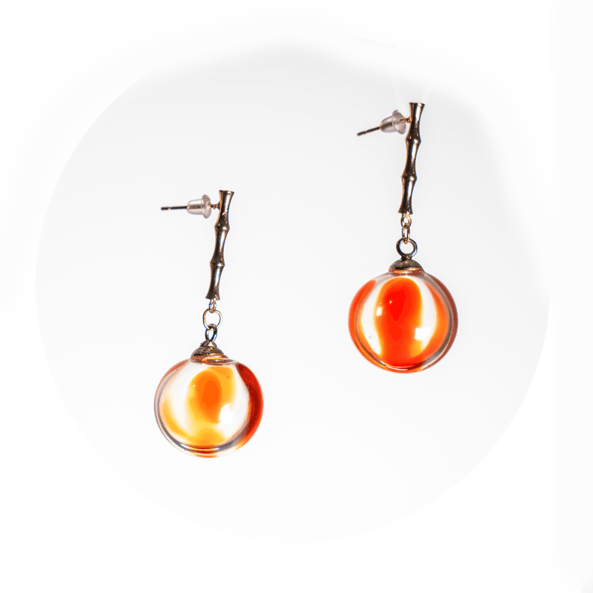 Gün batımının sıcak tonlarından ilham alan bu küpe, şeffaf cam küre formunda tasarlanmıştır. Çelik aparatlarla tamamlanan her parça, usta zanaatkârların elinden çıkan benzersiz bir sanat eseridir.